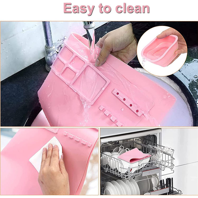 • 🔎 The silicone craft mats are large enough to prevent paint splashes and have waterproof grooves around the edges to prevent them from escaping, the silicone mats prevent scratching and soiling your table and keep it neat and tidy.